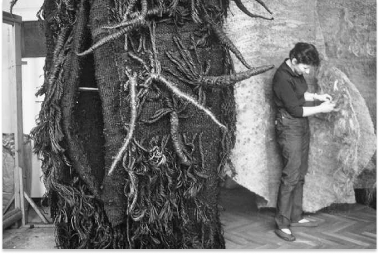 Abakanowicz begins to find her own artistic language. As she resists pre-defined categories of tapestry, textile, craft, decorative art or fine art, a new genre is named for her: ‘Abakans’. She becomes recognised for her efforts and exhibits throughout Poland and internationally.